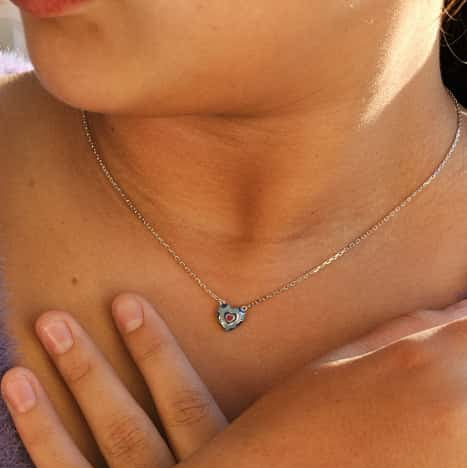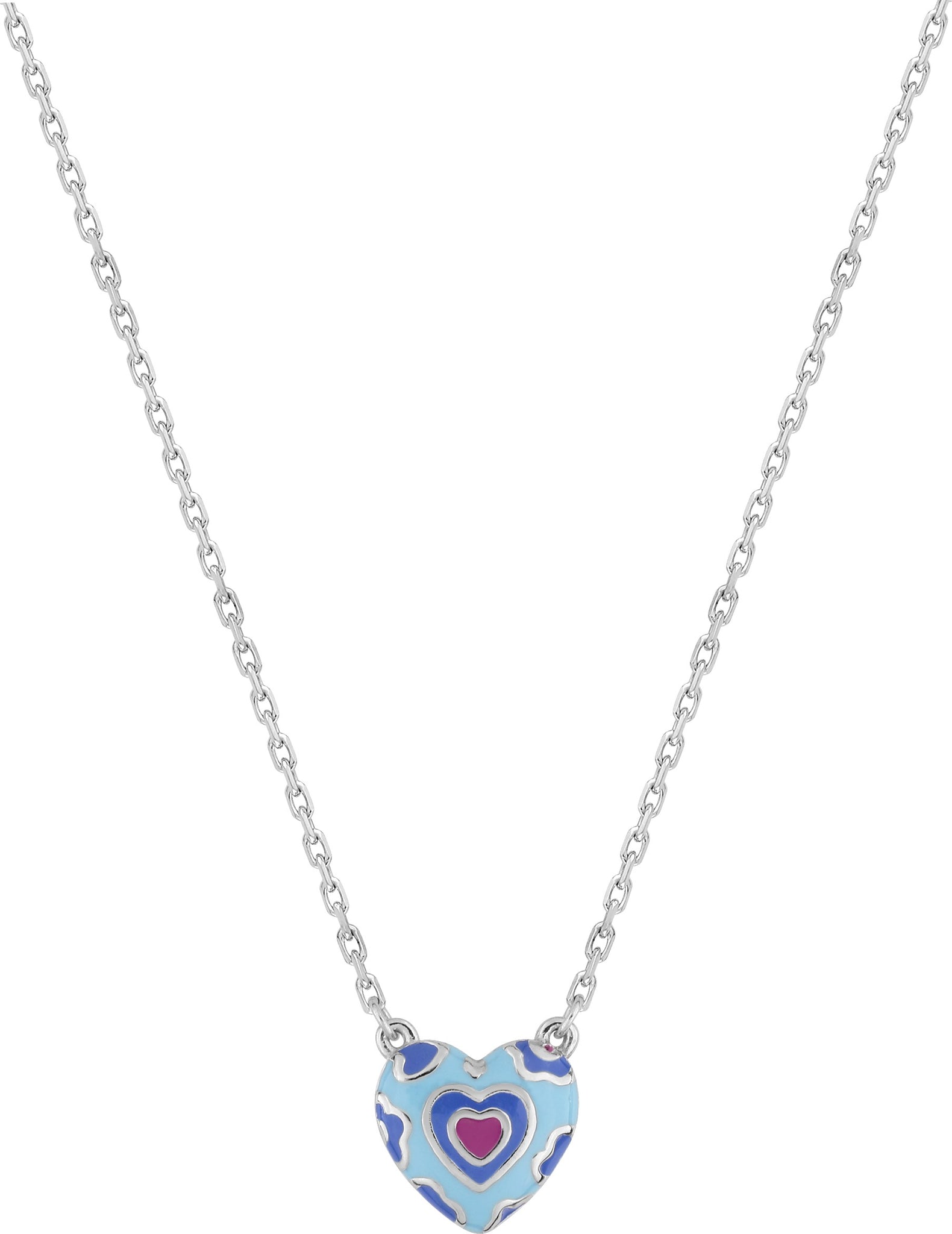 El collar Plata De Ley con colgante corazón de laca azul y rosa. 42CM largo