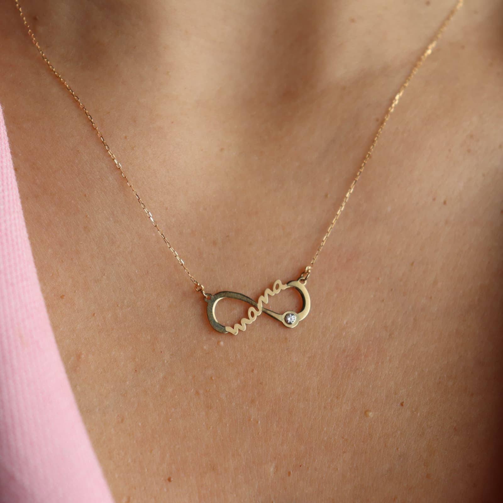 GARGANTILLA MAMÁ INFINITO ORO AMARILLO CIRCONITA 21X9 MM
