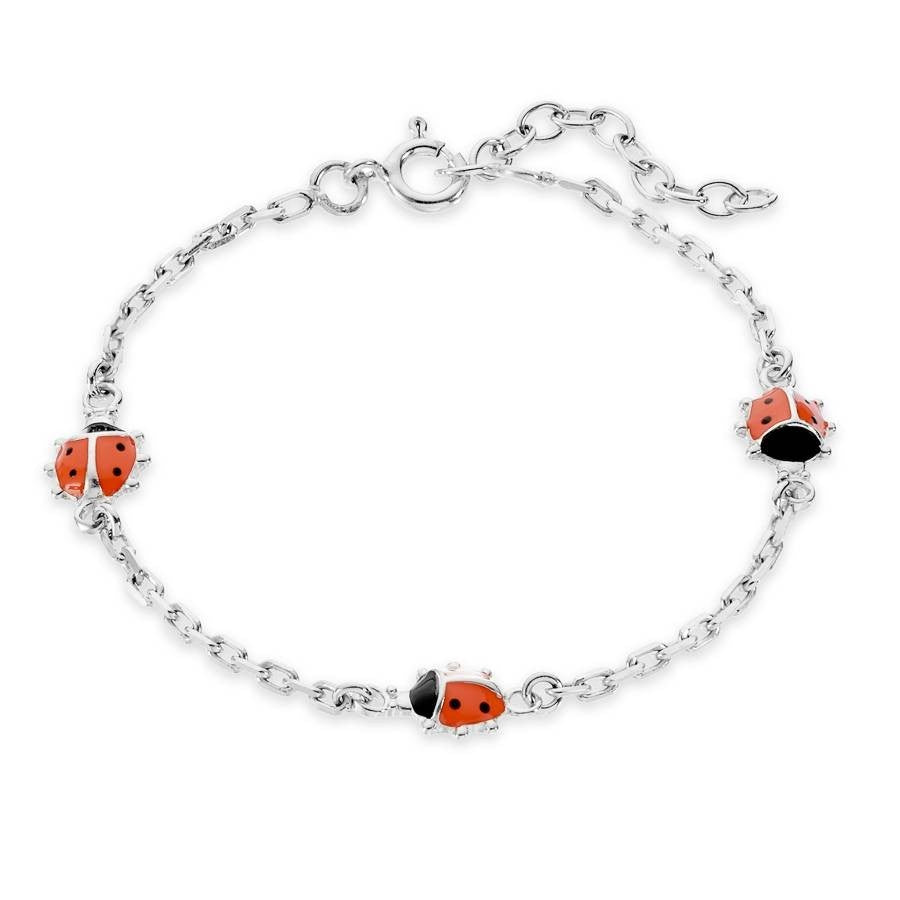 Pulsera de plata de Ley 3 Mariquitas con esmalte rojo 14+3CM de Largo. Es romántica y moderna. Ideal para niñas que quieren un toque sutil y delicado.