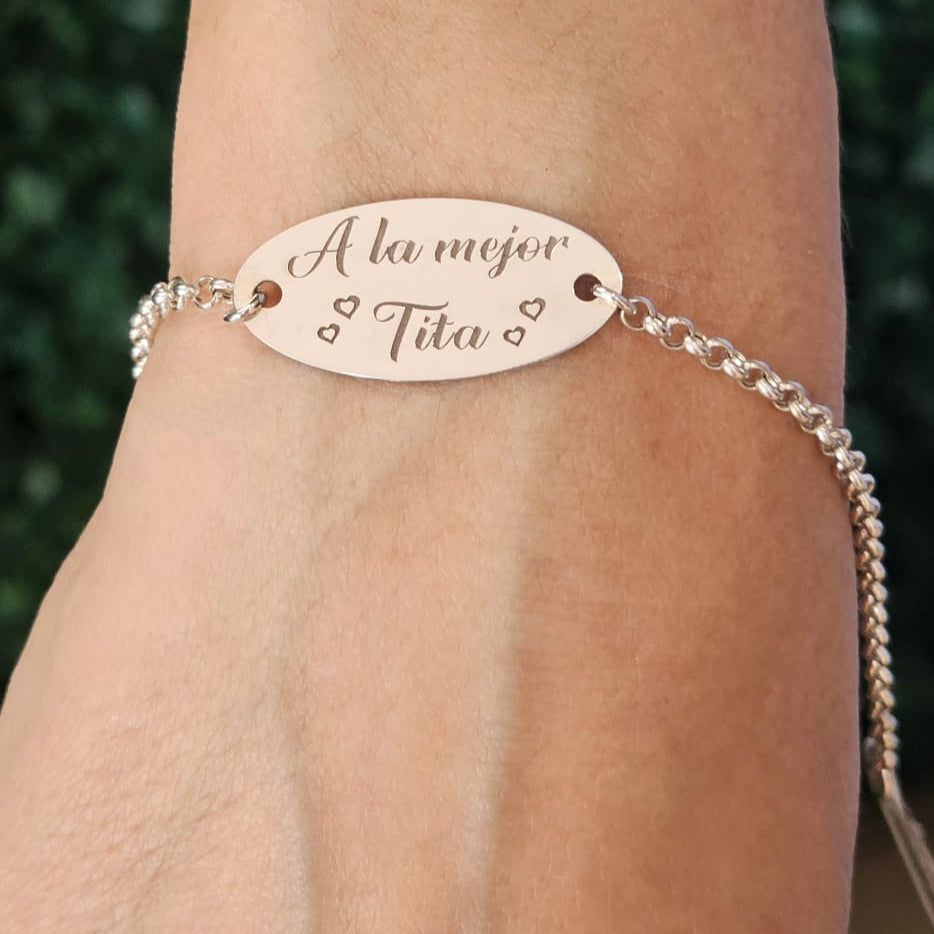 Pulsera Plata de Ley Personalizada. Diseño GRABADO PERSONALIADO.