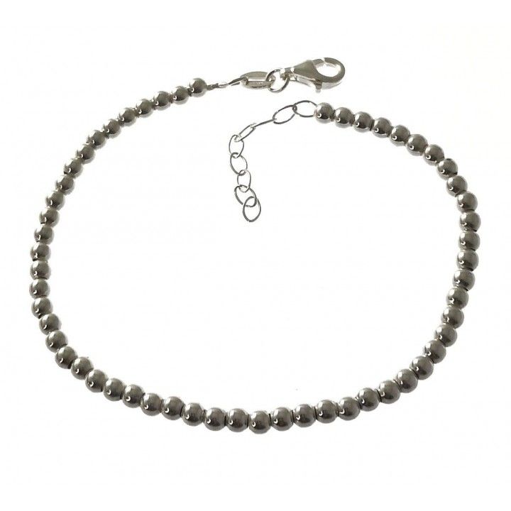 Preciosa Pulsera fabricada en Plata de Ley con un diseño de bolas pulidas. Es una pieza elegante y atemporal, fabricada en plata de primera ley. Su diseño son un clasico que convina con todo, la medida de largo es de 18cm mas 3 y bolitas de 3mm. Es unisex pero hay que tener en cuenta que puede quedar corto para hombres con muñecas gruesas. Cuenta con un cierre de reasa fuerte e incluye estuche y bolsa de regalo.