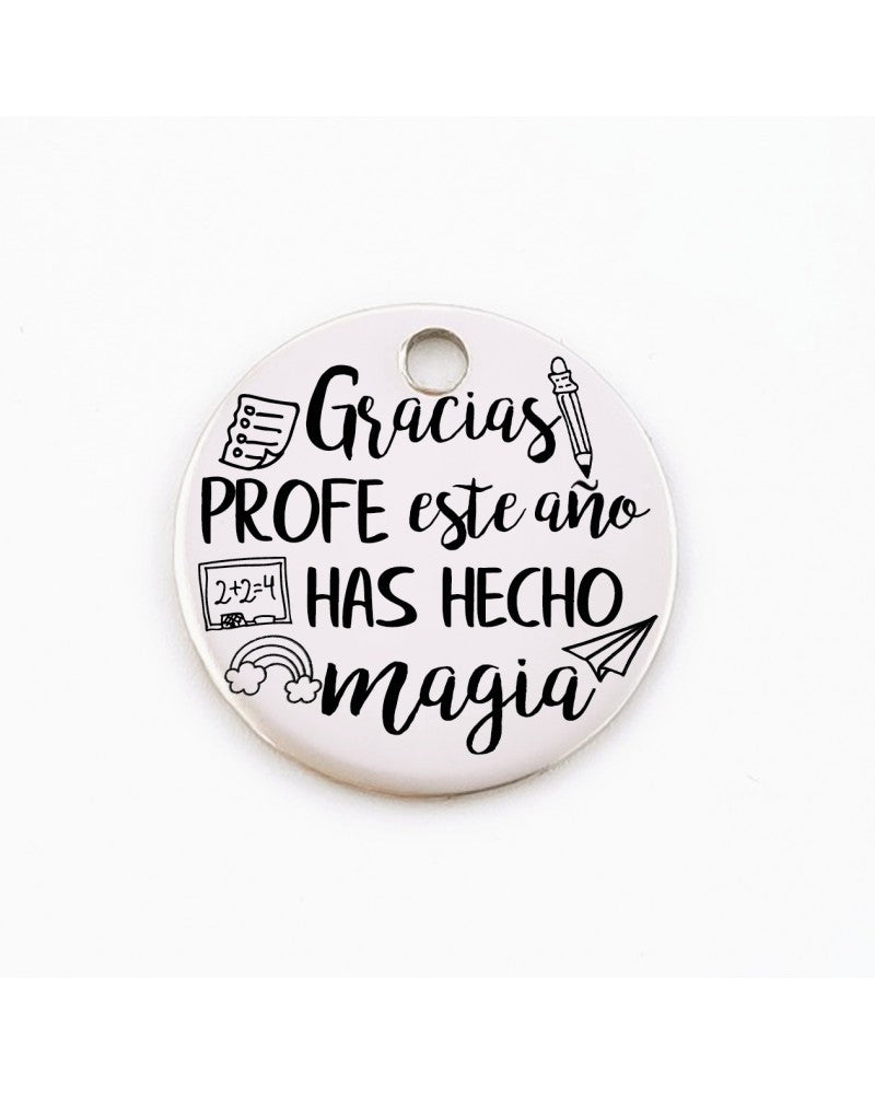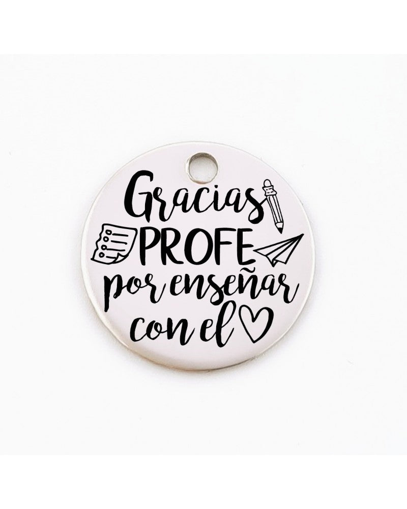 Pulsera realizada en Plata de Ley 925. Diseño de placa redonda en la que puedes personalizar tu mensaje. Detalle a color